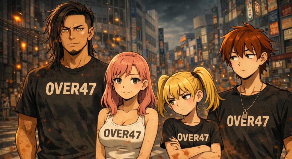 楽曲、アートワーク、ショート動画まで含めて、OVER47-JPの世界観をまとめて届ける。